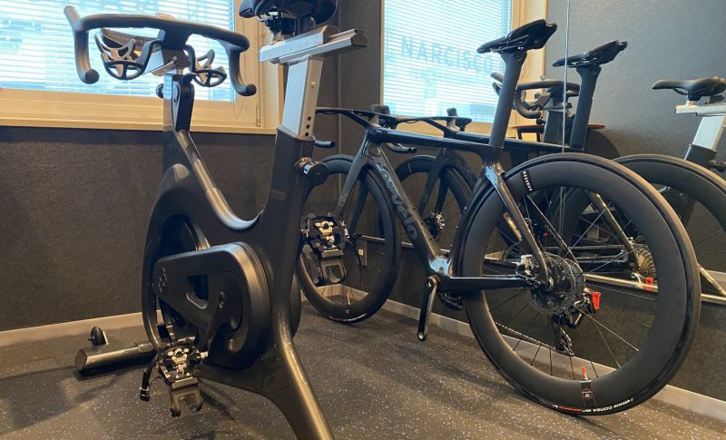 Johnny・Gスピニングバイクの横に、ロードバイクを置いてみた。