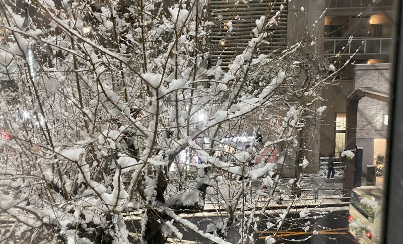 今日の東京は午前中から「雪予報」。案の定、早い段階で雪が降りだし。。。